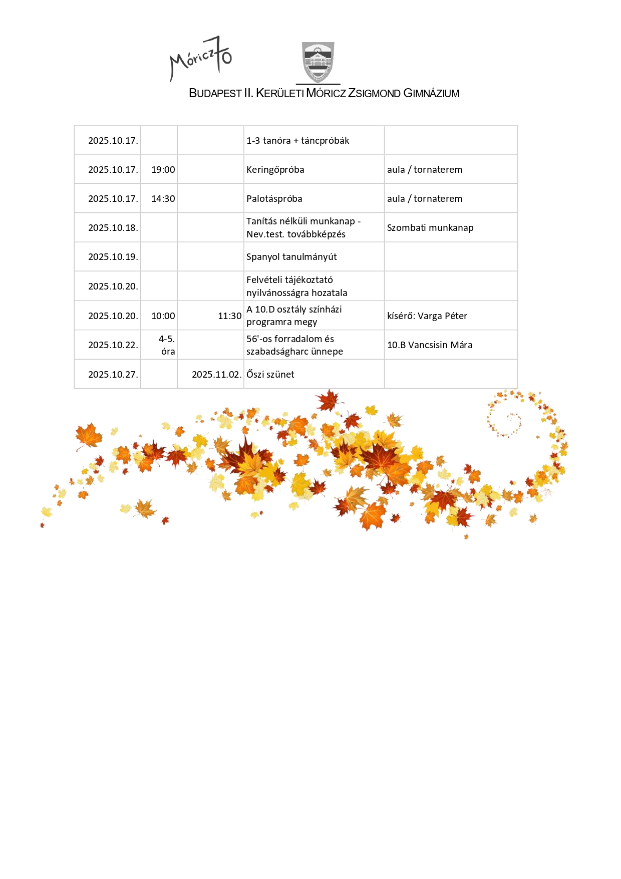November 5-én, az őszi szünet utáni első szerda délután iskolai Ki mit tud?-ot rendezünk. Ha bármiben szeretnétek megmutatni a tehetségeteket – legyen az ének, tánc, vers vagy akár egy saját ötlet – itt a lehetőség, hogy megmutassátok magatokat!
