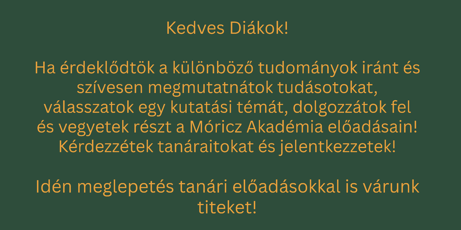 A kutatás, felfedezés és alkotás iránt érdeklődő diákoknak idén is lehetőségük van részt venni a Móricz Akadémián! Ha szívesen dolgoznának fel egy választott témát, bemutatnák munkájukat, vagy egyszerűen csak kipróbálnák magukat egy izgalmas projektben, szeretettel ajánljuk ezt a programot is.